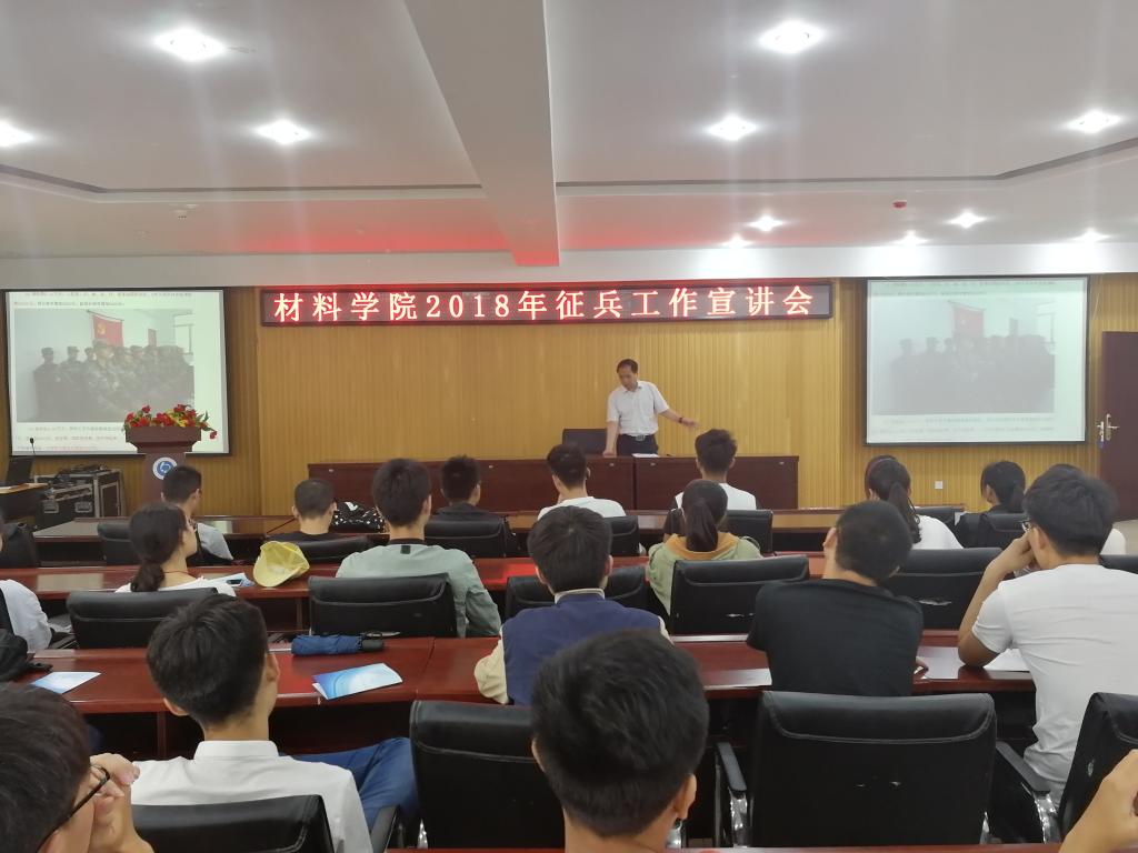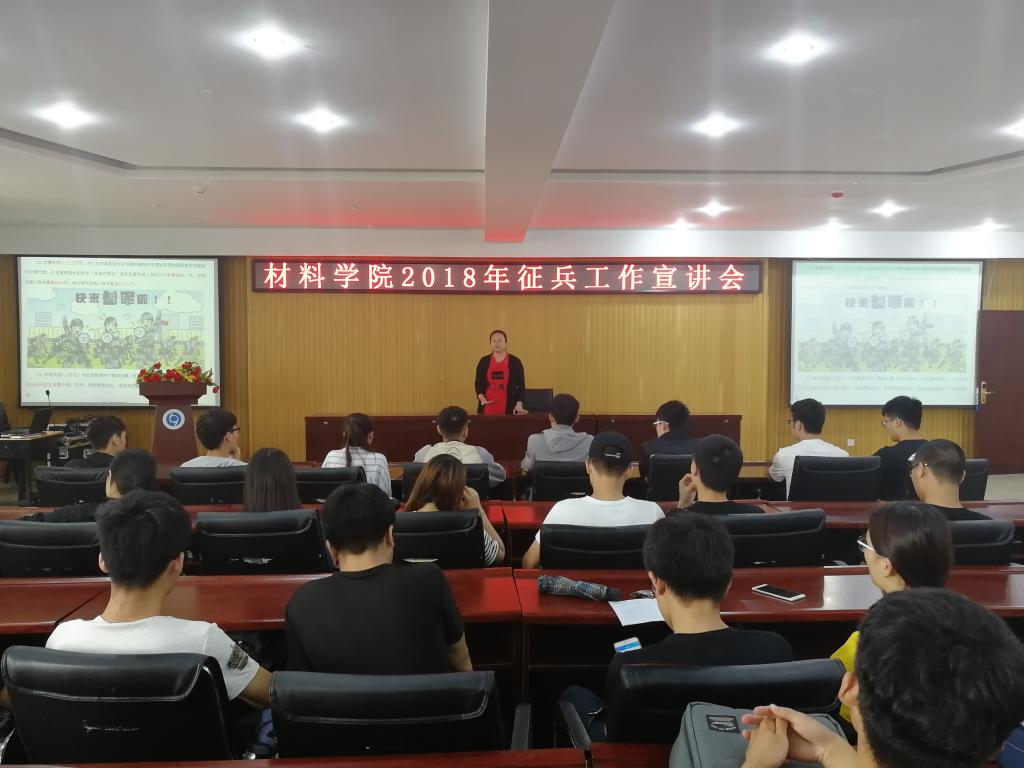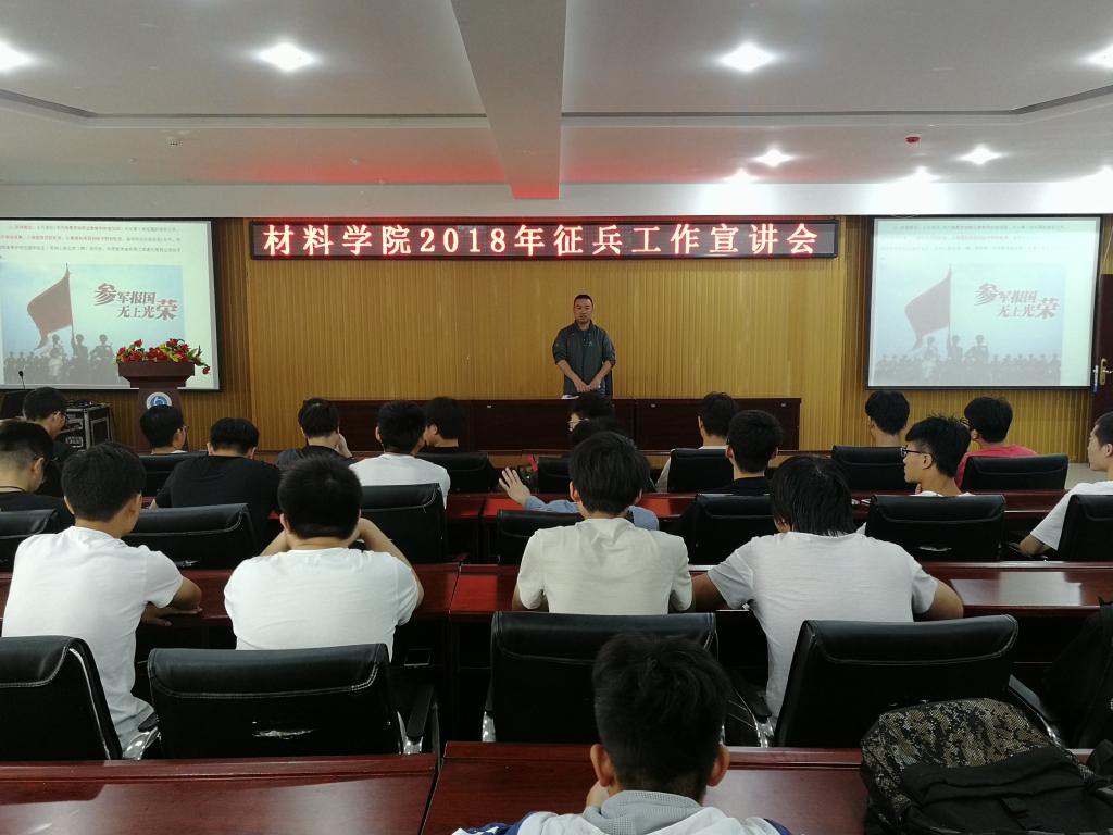 有一种大学叫军营,有一种无悔叫青春。2018年5月23日,材料学院2018征兵宣传会在工科1-5059举行,学院院党委副书记段文杰老师和各年级辅导员、学生干部出席会议。会议由段书记主持。