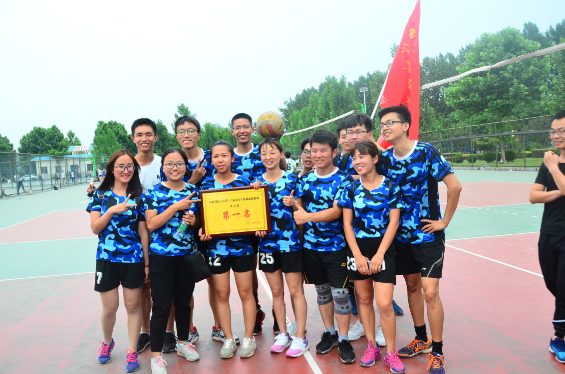 热浪滚滚,即使这样也丝毫未磨灭球员们的气势,男排队员们信心满满,展示出必胜的决心。第一场比赛在热烈的加油声中开始了,现场的气氛也越来越紧张了,一声哨响,对方发了一个下手球,飞过了球网,一传手以完美的角度垫给二传手,二传手飞身一跃将球扣回对方场地,把他们打的落花流水,又打了十几个回合,男排毫无悬念的由小组赛晋级八强赛。材料男排队员一个个生龙活虎,在八强赛中势如破竹,轻松进入决赛。球赛正热,在激烈的决赛中,球就像雷电交加般的传、接、砸向对方,即使对方高手如云,但我方队员运筹帷幄,全队目标一致,到快结束时大家的信心到达巅峰,连续击败对方,最终夺得胜利,材料学院荣获联赛第一名,再次卫冕冠军。女排在联赛中也表现突出,每个队员都奋勇杀敌,在球场上展示出飒爽英姿,令人遗憾的是女排未夺取桂冠,但也取的联赛第八名的优异成绩。