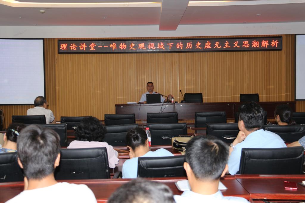 张教授首先就十九大报告中提出的“弘扬民族精神和时代精神”等进行阐述,并从什么是“历史”,“历史”的本质是什么,在历史问题上呈现出来的两种历史观,历史虚无主义思潮的出现及其原因以及警惕和纠正历史虚无主义思潮的根本之策,唯物史观和唯心史观的区别等多个方面进行深层次,全方位的解读。最后,张教授向全体老师推荐多本书籍,希望大家警惕历史虚无主义,高度重视意识形态工作,切实加强党的思想建设。