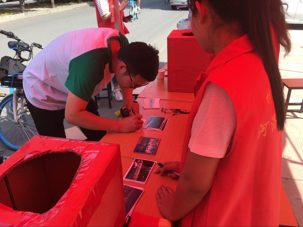 上午,毕业生们还在开元会议中心参加毕业典礼时,青年志愿者们早已在工科一楼下为他们准备好了水和写满祝福的明信片。当学长学姐们参加完毕业典礼返回路过工科一时看到志愿者们为他们准备的水和明信片时,都不禁停下脚步,积极参与到活动中,再次感受科大的温暖和热情。学长学姐们欣然接受了写有学弟学妹们对他们满满祝福的明信片,更是珍重的为学弟学妹写下了寄语和希望。最后,活动在充满温馨与感动的氛围中圆满结束。