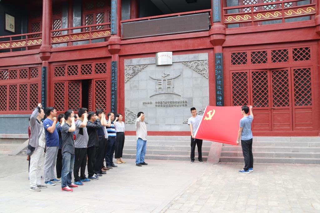 参加活动人员一同走进三门峡陕州区大营镇大营村周恩来纪念馆、函谷关修德养廉教育基地,接受洗礼,并重温了入党誓词。